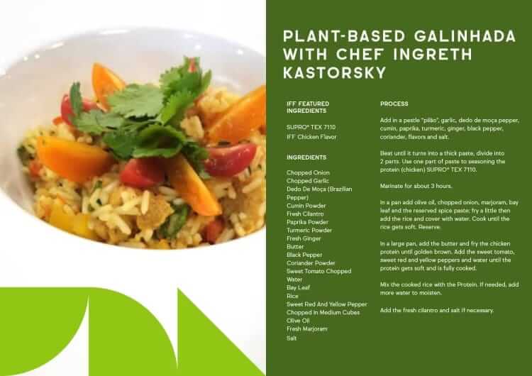 Home » Stories » Celebrate Hispanic Heritage Month with Delicious IFF Recipes Celebrate Hispanic Heritage Month with Delicious IFF Recipes 10 October 2023 in: @IFF @IFF Hispanic Heritage Month is a time to honor and celebrate the rich cultural contributions of Hispanic and Latinx communities. At IFF we celebrate the diversity within the these vibrant cultures all year long through the joy of food. We’re excited to share recipes from our very own IFF Principal Chefs Ingreth Kastorsky and Joe Scott. These talented chefs have a deep appreciation for Hispanic flavors and cooking techniques and they’re here to showcase how classic Hispanic dishes can be reimagined to fit modern trends. Join us as we explore mouthwatering plant-based recipes that celebrate Hispanic heritage. Galinhada (plant-based) The History Behind the Dish with Chef Ingreth Kastorsky: Galinhada a beloved culinary tradition hails from Minas Gerais a Brazilian state in the southeastern region of the country. This hearty rice dish typically features tender chicken and a delightful array of seasonings. However our version is plant-based offering a traditional dish with a modern twist.In Latin America rice with chicken known as Galinhada or Arroz con Pollo in some regions holds a prominent place on dining tables. This delectable dish combines chicken pieces rice an assortment of vegetables and a blend of various spices. Saffron often infuses the rice with a vibrant yellow hue and distinctive flavor.The combination of chicken and rice is a culinary staple across many Latin American countries each adding its unique twist. Beyond satisfying hunger sharing this meal is a social and familial experience symbolizing tradition togetherness and culinary opulence that characterizes the region. Chef Ingreth’s plant-based Galinhada pays homage to this cherished tradition showcasing the unique and beloved aspects of Latin American cuisine. “This dish reminds me of the mothers and grandmothers before me placing this dish down on the center of the table for a large celebration with family and friends”. Pernil (plant-based) How Hispanic Culture Has Influenced My Cooking with Chef Joe Scott: Chef Joe Scott brings a wealth of culinary experience including a degree in chemistry to his work at IFF. His role in the meat alternative team allows him to explore new and unique food ideas. “Growing up in New York I was exposed to a diverse array of cultures forming strong connections with the Puerto Rican community. I was inspired by the Latin culture’s emphasis on family and celebration”.Throughout his career Chef Joe spent time living and cooking in New Orleans and South Florida regions often described as the “Northern Caribbean.” These experiences significantly influenced his culinary preferences especially his love for Caribbean food.One outstanding example of how this influence has translated into culinary design at IFF is his plant-based version of slow-roast pork served with pigeon peas and rice known as Vegan Pernil y Arroz con Gandules. He incorporates the vibrant flavors of Mojo Criollo to elevate the dish creating a mouthwatering fusion of tradition and innovation. This Hispanic Heritage Month we invite you to join us in celebrating the rich and diverse flavors of Hispanic and Latinx cuisine. Through the creativity and passion of our IFF Principal Chefs Ingreth Kastorsky and Joe Scott we’ve witnessed how classic Hispanic dishes can be transformed into plant-based masterpieces while preserving their cultural essence. These recipes are a testament to the power of food to bridge cultures and create memorable experiences. Try these dishes in your own kitchen and savor the delicious taste of Hispanic heritage. Topics: CareersOur People Share